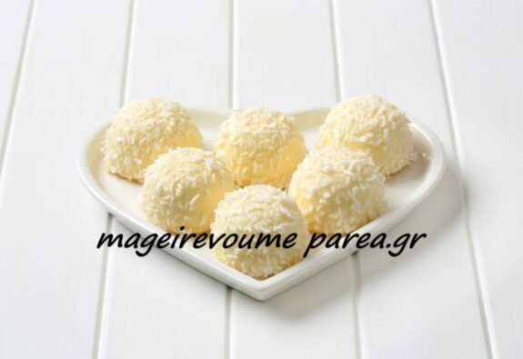 Πανεύκολα Τρουφάκια με Λευκή Σοκολάτα και Ινδική Καρύδα